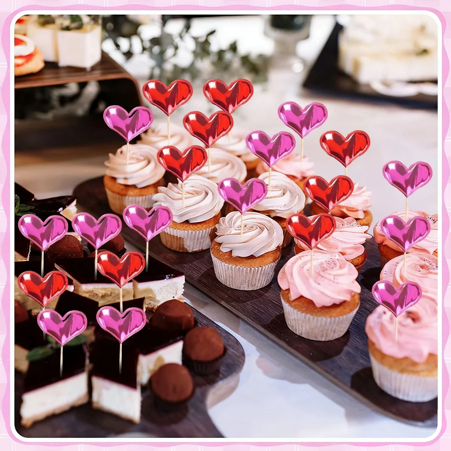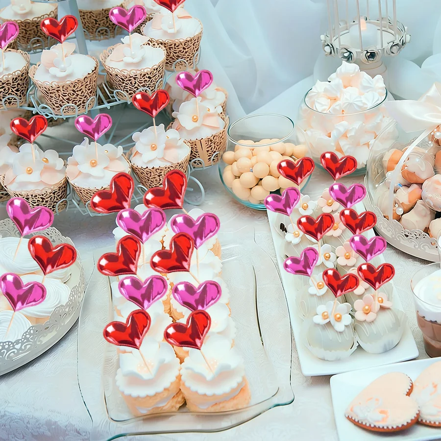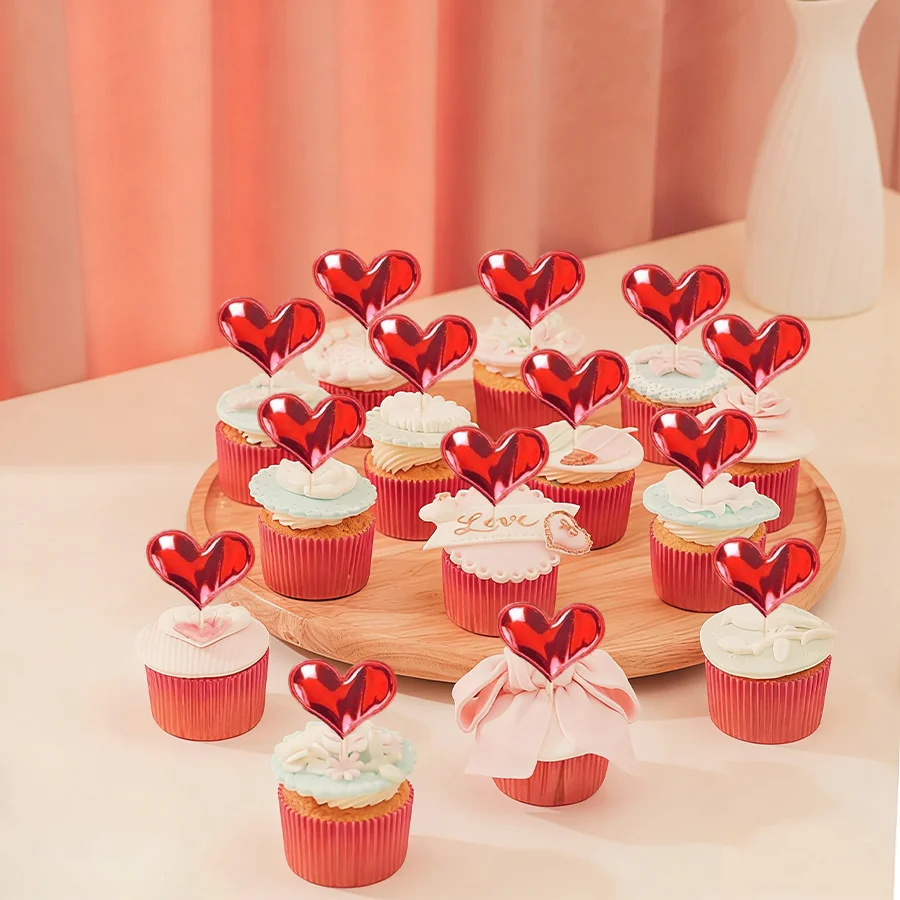 50/100Pcs Red Heart Cupcake Toppers Valentine's Day Cupcake Picks DIY Dessert Fruits Food Picks for Wedding Birthday Cake Decor